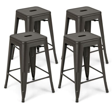 Metal ladder back bar stools are bar stools that feature a ladder-like design on the backrest. They are typically made of metal, such as steel or iron, and come in a variety of styles and finishes. These stools are popular for their sturdy construction and timeless design, making them a great addition to any home bar or kitchen island.